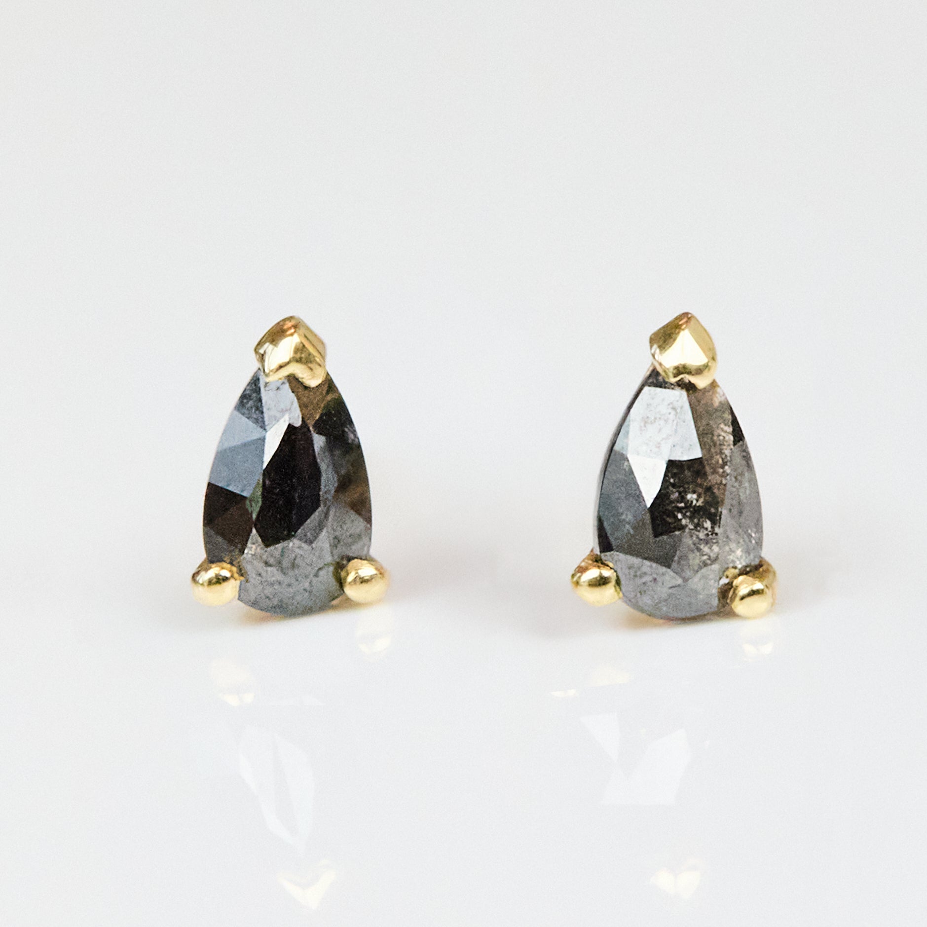 Petite dark and stormy salt and pepper diamond kite studs in our signature 18ct yellow gold setting. Minimally luxurious earrings to wear now and forever.