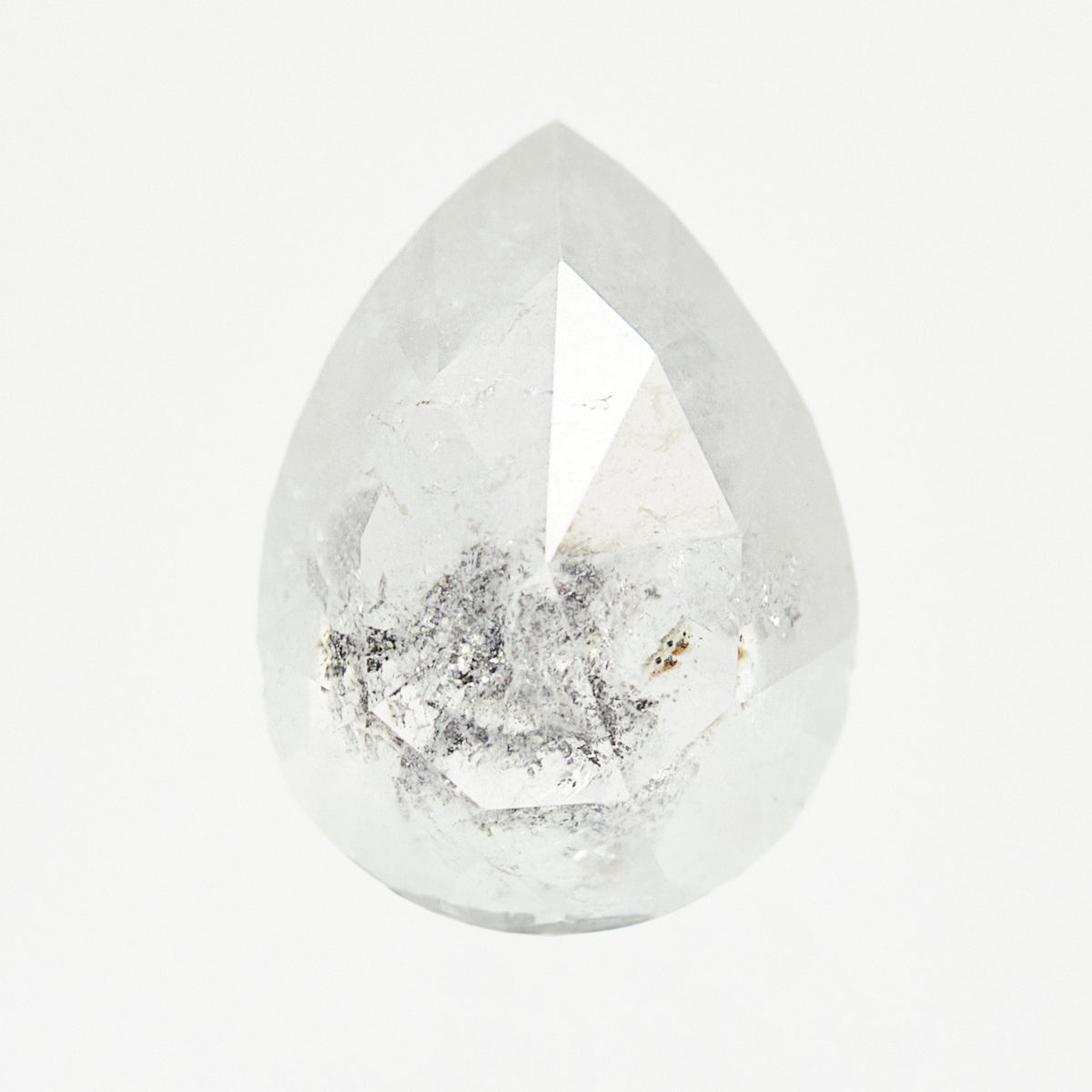 This 1.05ct icy white pear rose cut diamond features a stunning speckled hue. Its elegant shape and brilliant sparkle make it a perfect choice for a sophisticated and timeless engagement ring.