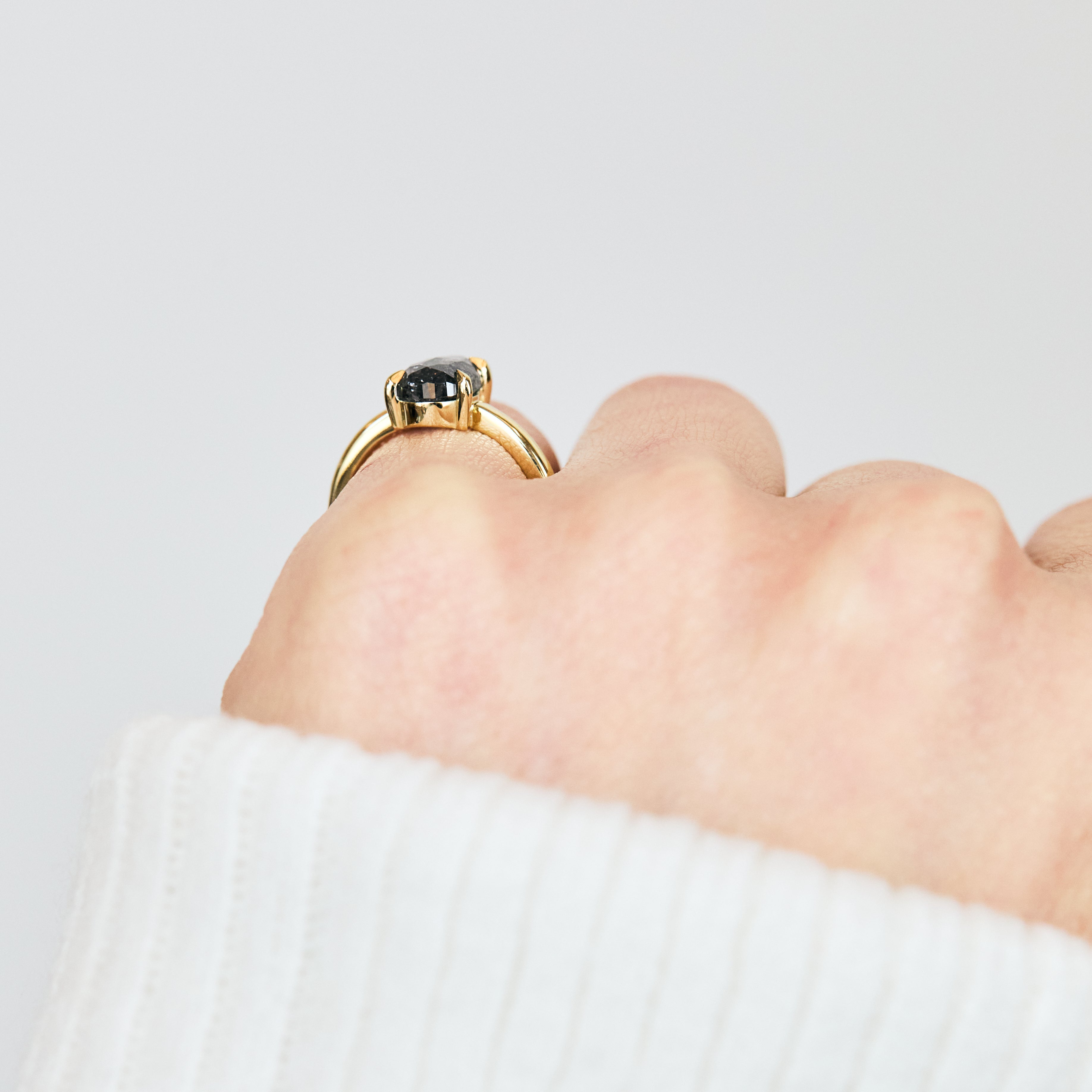 Shown pictured with our Aura Diamond Wedding Ring, Dot Ring with Black & White Diamonds, and Cora Diamond Wedding Ring – all sold separately.