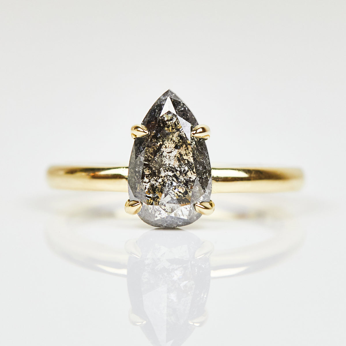 1.20ct Pear Shape Salt and Pepper Diamond Engagement Ring, Juno Setting