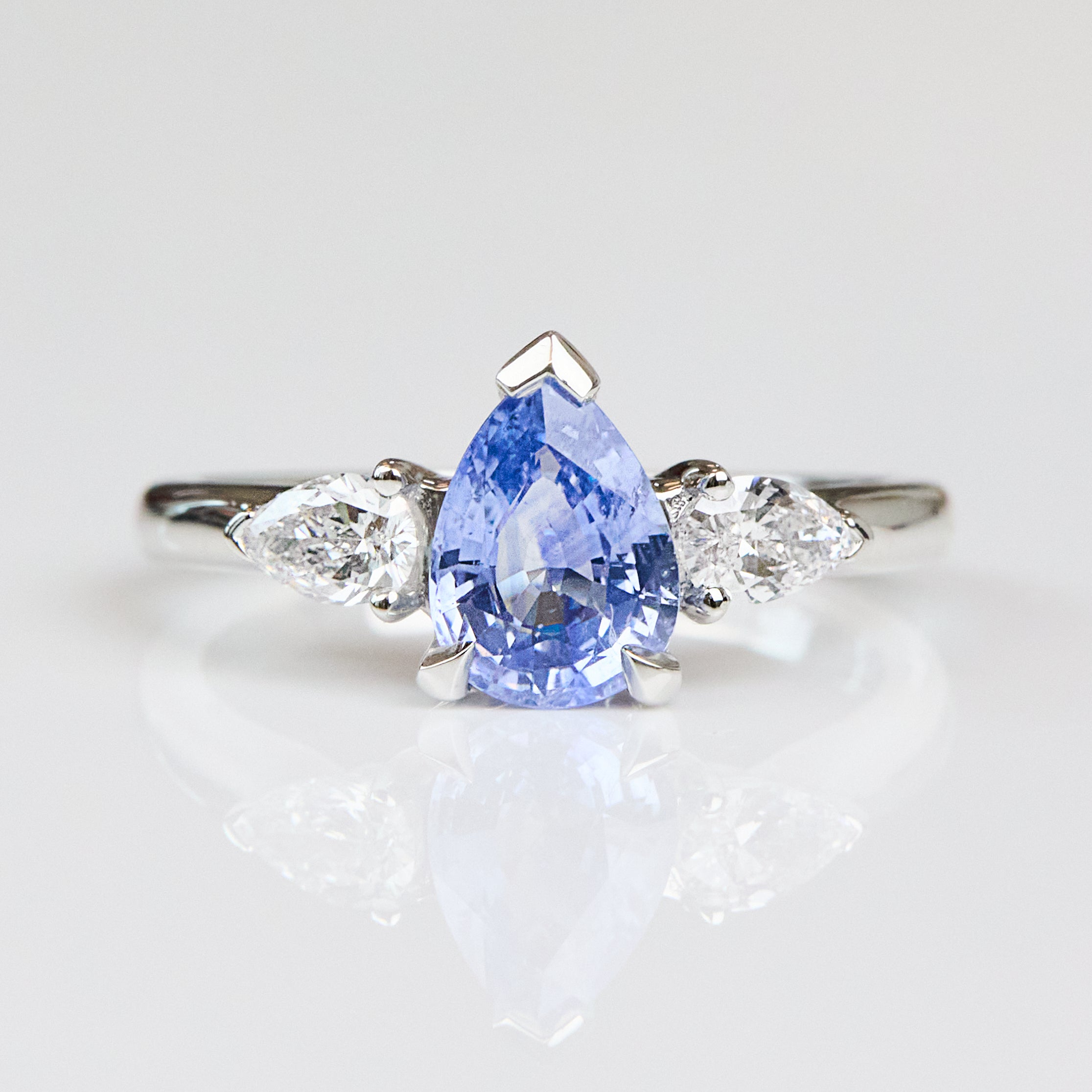 1.27ct Pear Shape Blue Sapphire Engagement Ring, Luna Setting