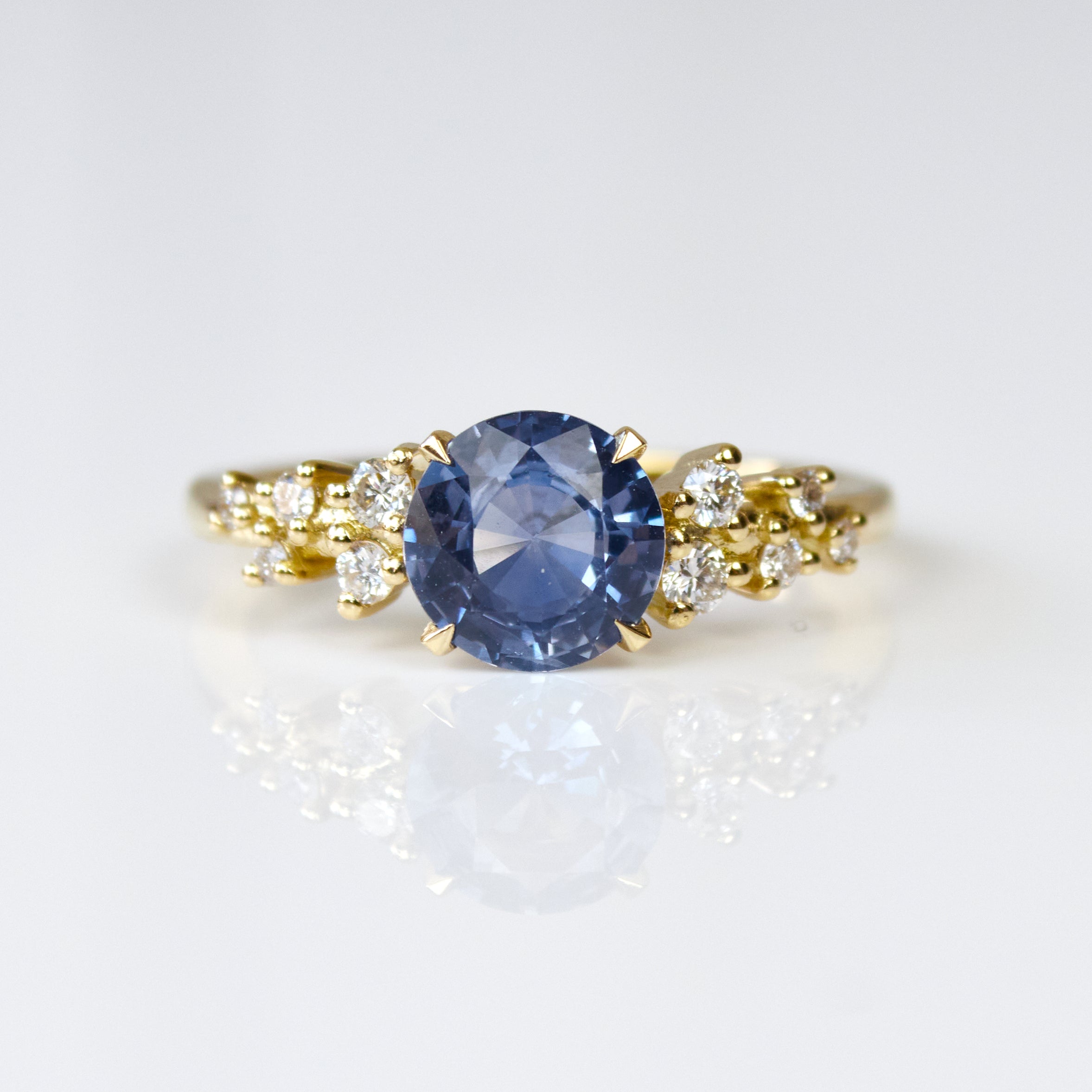 1.30ct Round Brilliant Cut Blue Sapphire and Diamond Engagement Ring, Cruz Setting