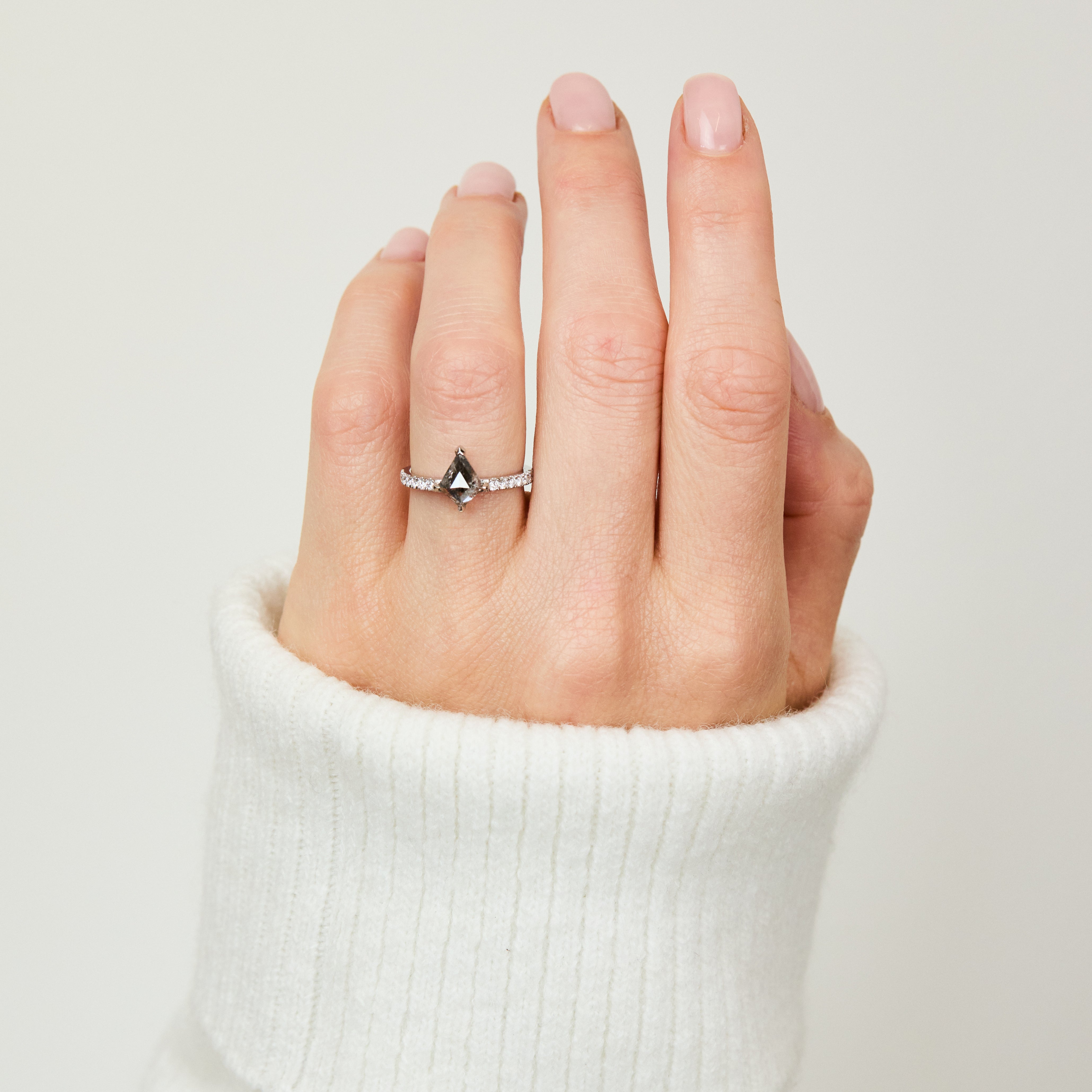 1.33ct Kite Salt and Pepper Diamond Engagement Ring, Athena Setting