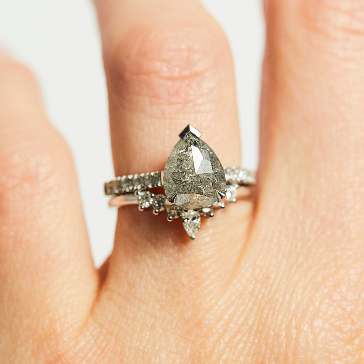 1.90ct Pear Salt and Pepper Diamond Engagement Ring, Athena Setting