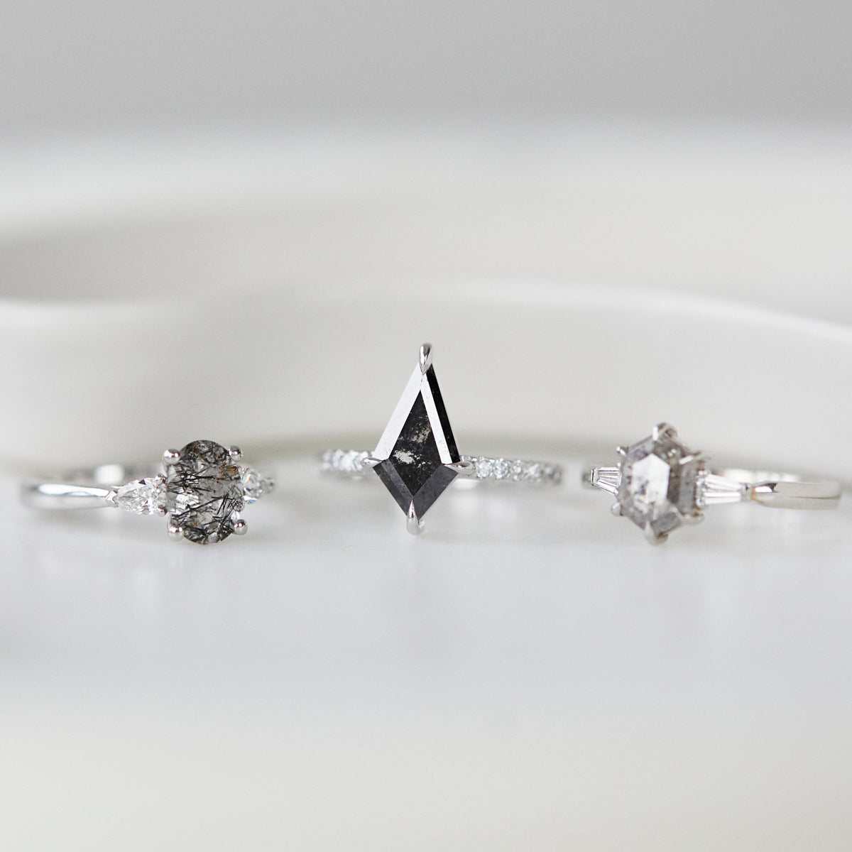 1.70ct Kite Dark Salt and Pepper Diamond Engagement Ring, Athena Setting
