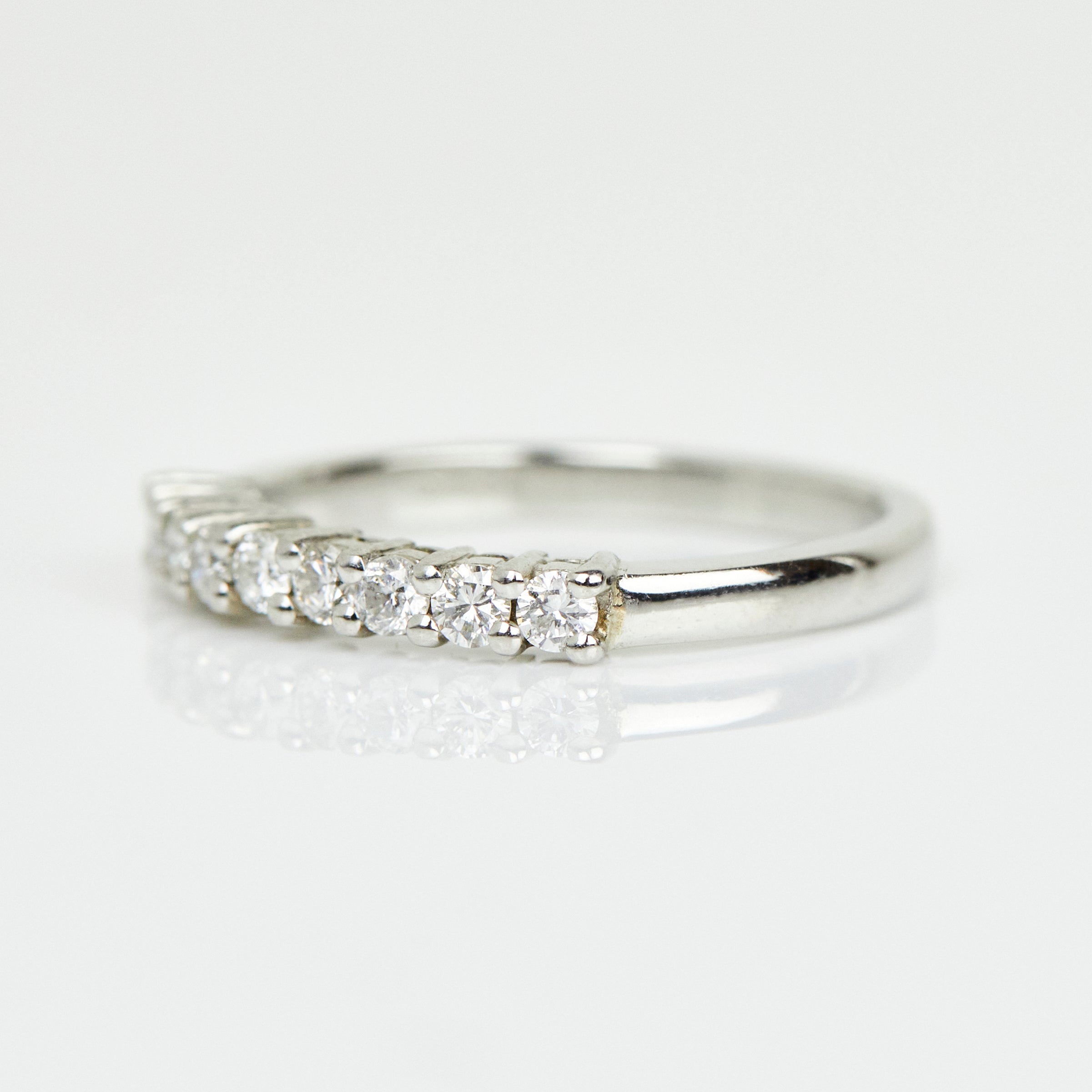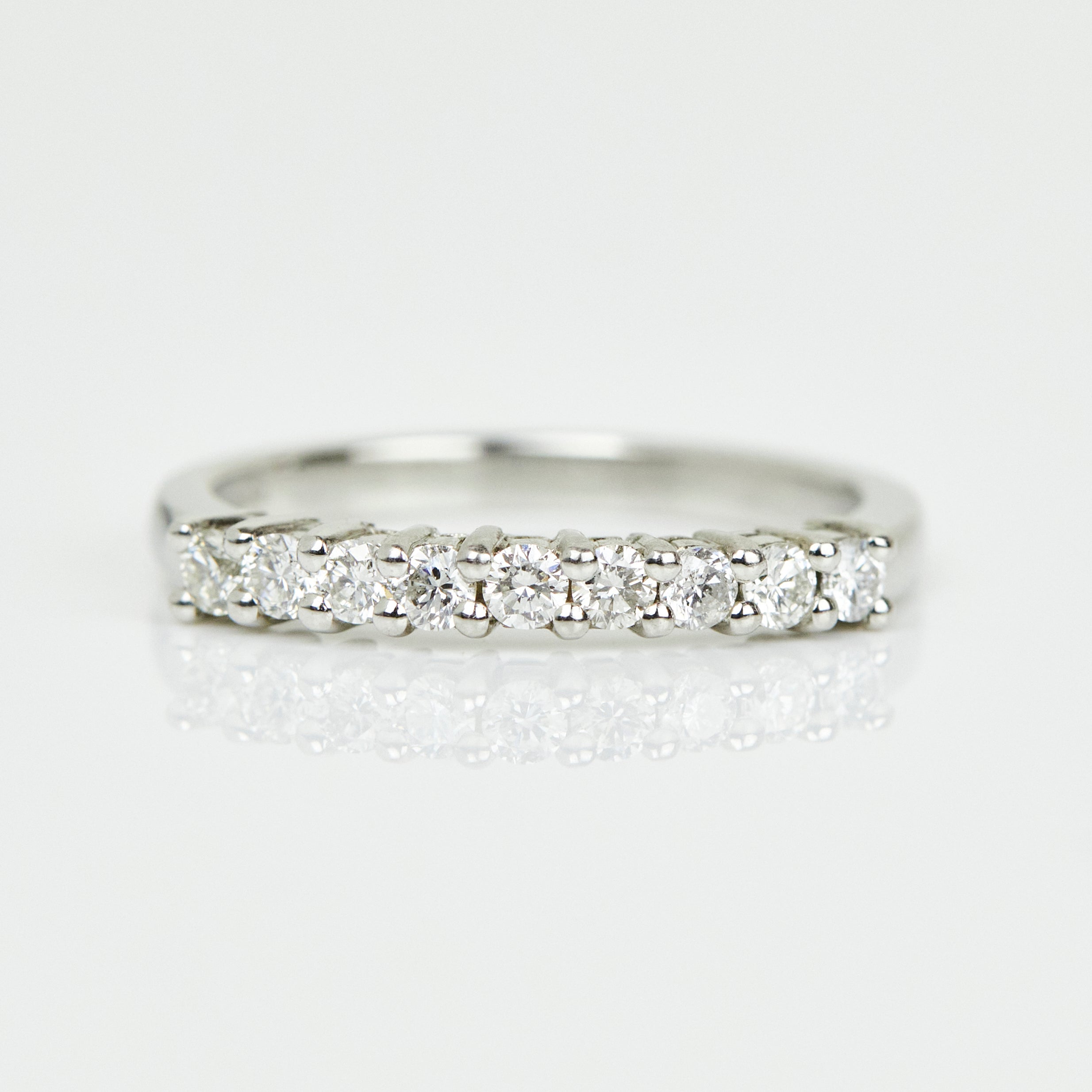 This time-honoured style symbolises the everlasting with a row of ten round brilliant cut diamonds in a shared claw platinum setting to underline and echo the profile of your SPJ engagement ring.