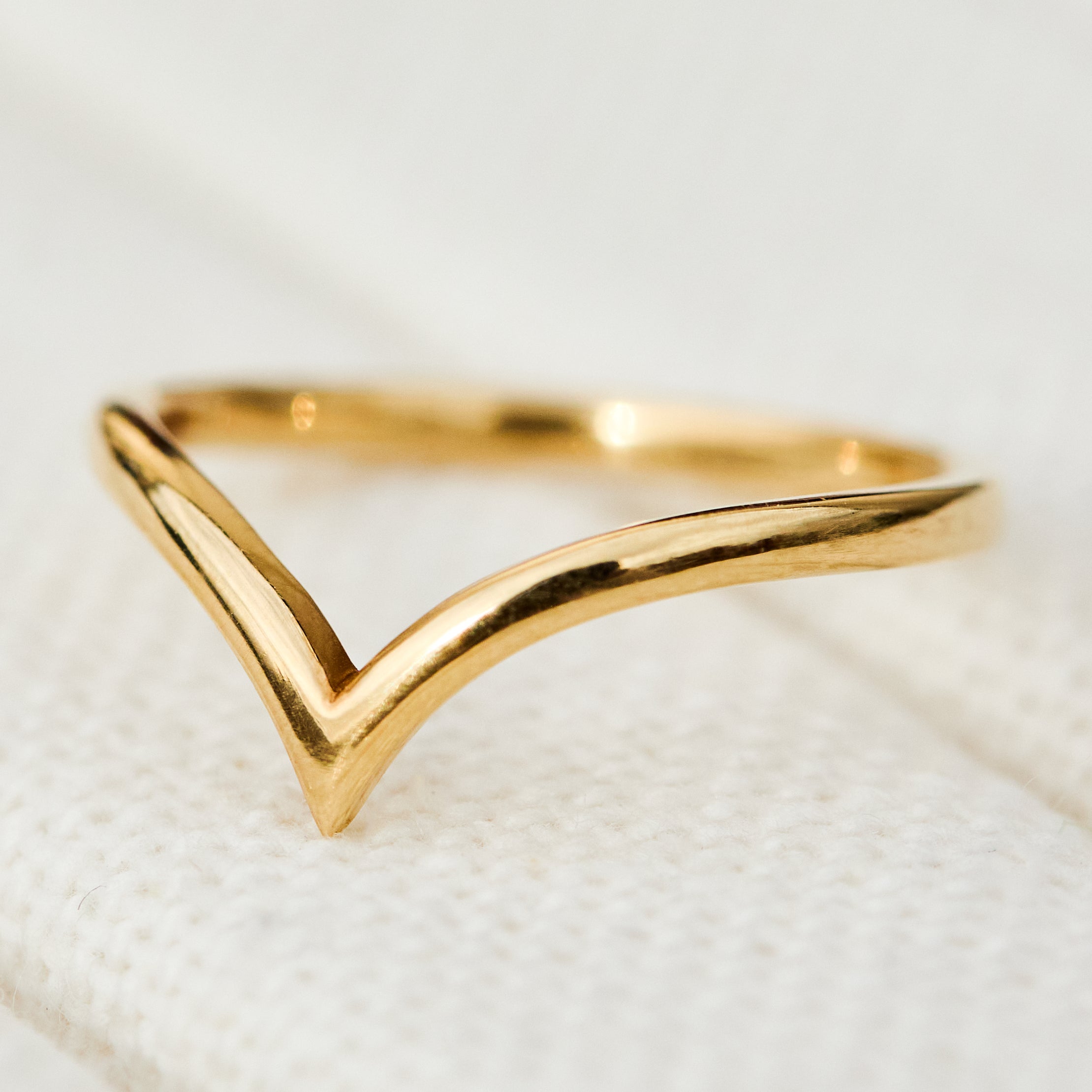 A classic wishbone wedding ring with a twist: Amelie is the perfect shape to accommodate engagement rings with lower mounts and more unusually shaped central stones, such as hexagons and kites, whilst completely holding its own.