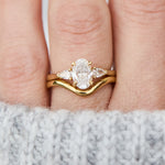 The Anaïs wedding ring is the perfect solution for engagement rings with a rounder central stone, or for those who want their engagement ring prettily framed by this band’s classic 18ct yellow gold curve.